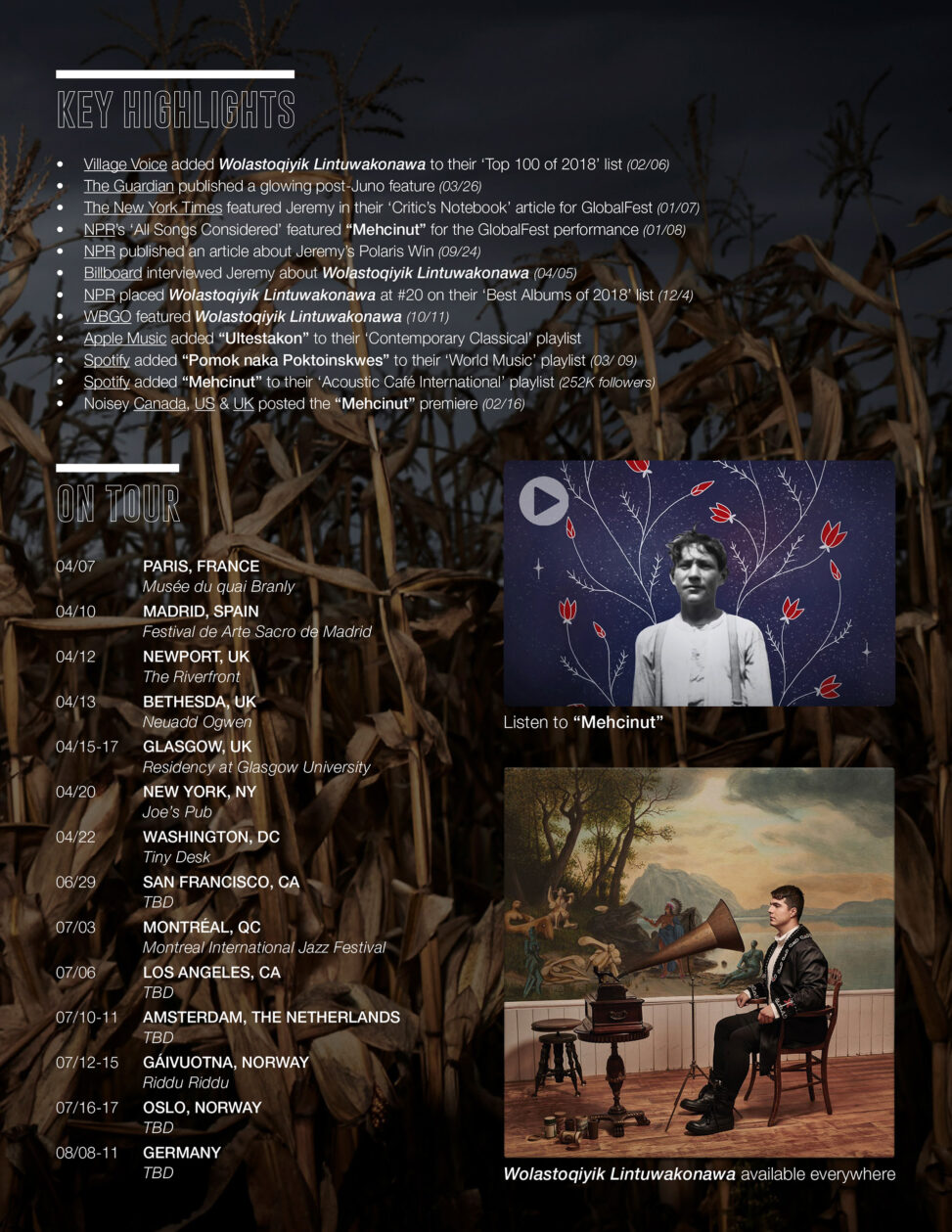 Jeremy Dutcher – Wolastoqiyik Lintuwakonawa – One Sheet (2/2) In Layout Design ← Previous post Next post →