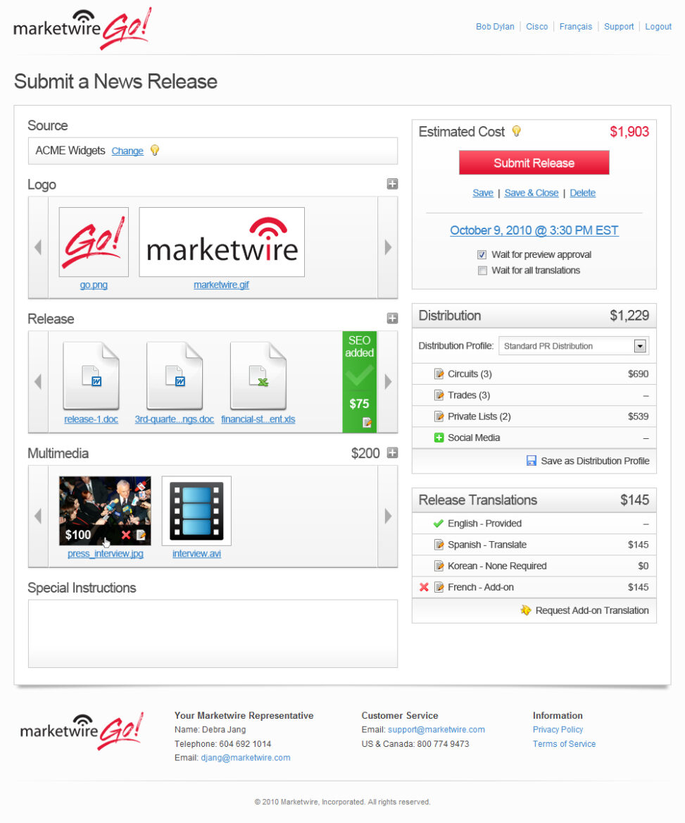 Marketwire – Resonate Platform – Submit a News Release 2